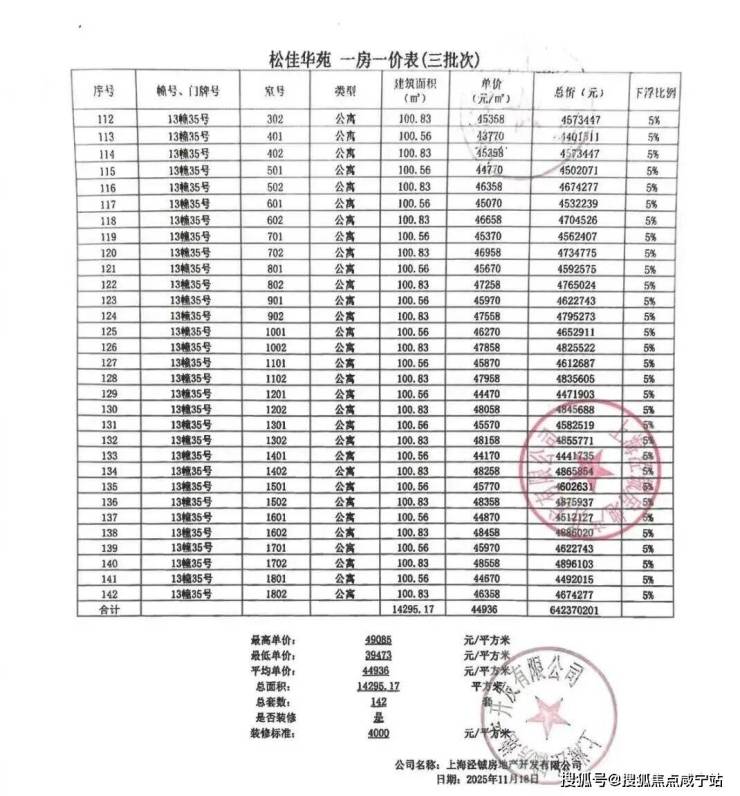 往下阅读项目一房一价表!