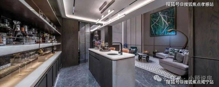 5. 整体采用了海派的装修风格,例如更耗时更费钱的带弧度的半圆形吊顶!以及当大部分项目还在用长虹玻璃时,招商臻境售楼处营销中心☎:400-8800-703✔✔在厨房的三轨道移门处使用了水波纹玻璃,更具奢华感!这样的细节上次还是在看3000万级别的豪宅时才看到!