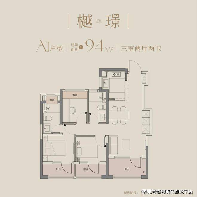建面约94㎡户型,即做到了三阳台的配置,方正户型格局,大开间尺度,全室飘窗设计,可做多元改造,如储物空间或拓展室内面积,为生活打开更多想象空间。