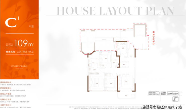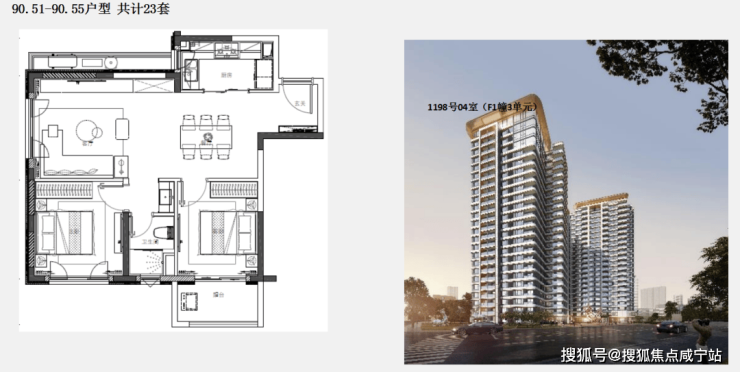 该项目一期于2023年7月取证,均价约9.96万/㎡,推出建面约83-198㎡的2-4房房源。主力户型为108㎡的三房两厅两卫,得房率约80%。
