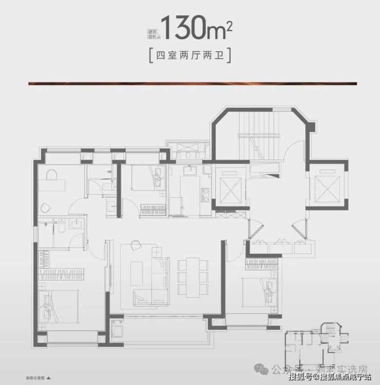130㎡的四房户型,非常适合改善家庭置业。