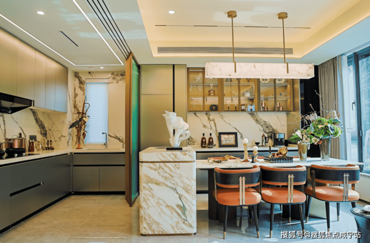 中厨可做独立空间,也可以完全敞开,与西厨餐厅相连,整个空间打开,更加宽敞。国贸海屿佘山售楼处电话/地址☎:400-880-0703(预约热线)√√