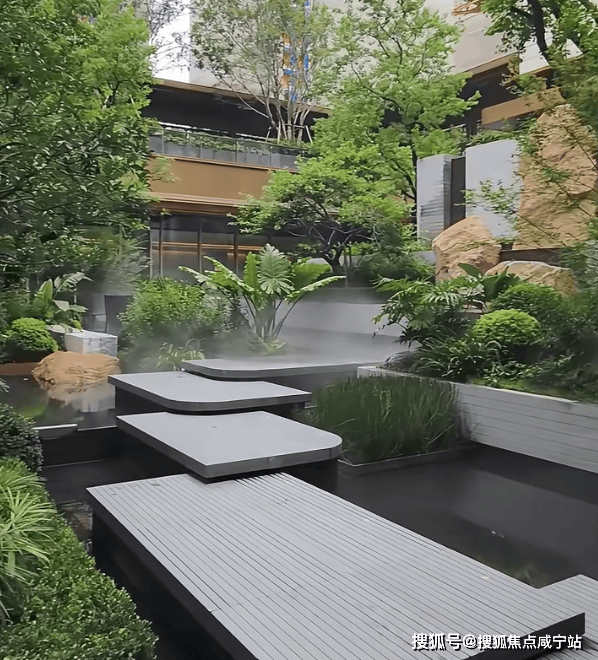 整个会所的500平米的立体庭院,打破传统沉闷感,巧妙营造出“空中花园、森林秘境、水岸客厅”三重沉浸场景,让业主仿佛置身于立体花园之中!