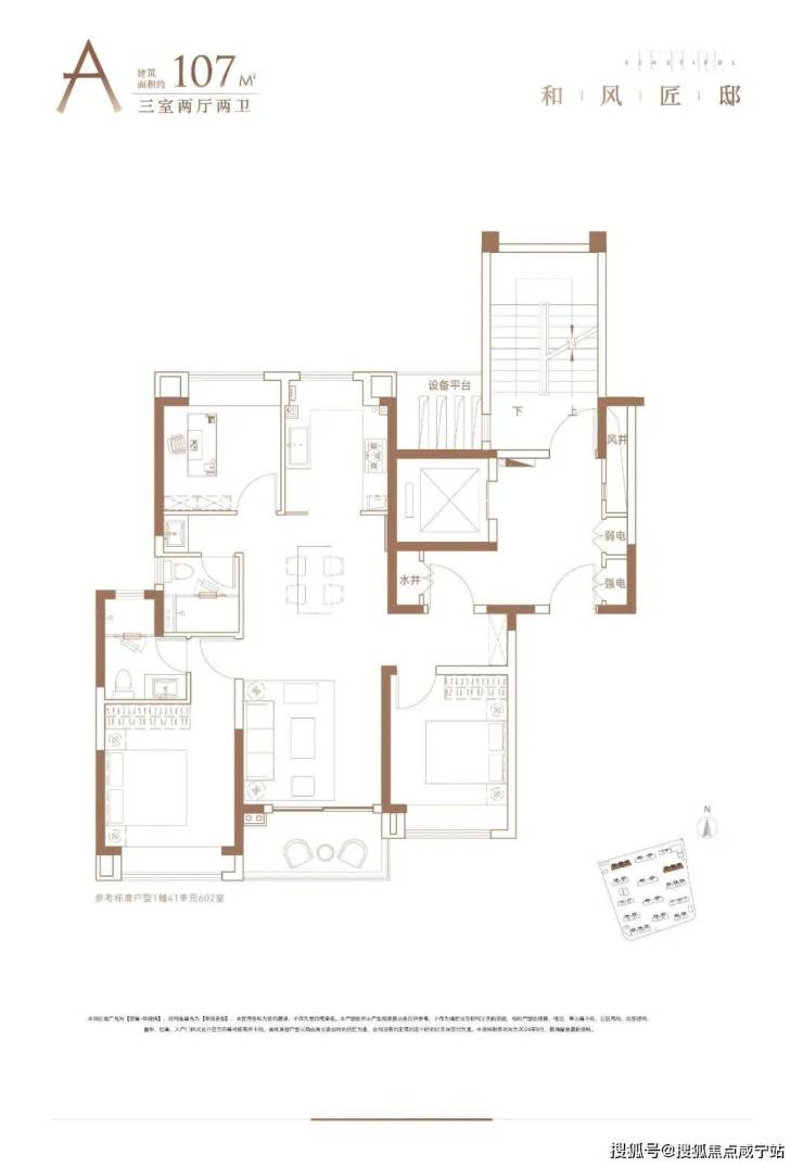 该户型在约107㎡户型基础上有所提升,增加了1个北向卧室空间,更适合三代同堂或多孩家庭改善居住~