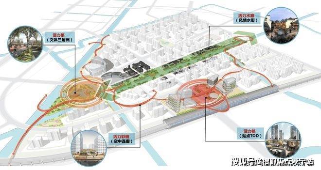 作为城市发展商角色的中交城投,正在为华新未来的发展谋划一盘“大棋”,打造以示范线-徐乐北路站TOD为主导,通过以历史文脉、科创体验及绿色生态为核心的复合站前体验区;打造科创TOD街区,融合了东方水镇,生态与文化的交融,形成“街、桥、寺”的水镇空间。