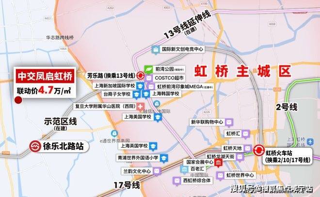 通过这样的一条高能级轨交,虹桥所有的核心资源,例如华漕的COSTCO、虹桥天地购物中心、龙湖虹桥天街、徐泾的国家会展中心等,几乎都掌握在中交凤启虹桥业主的手中。