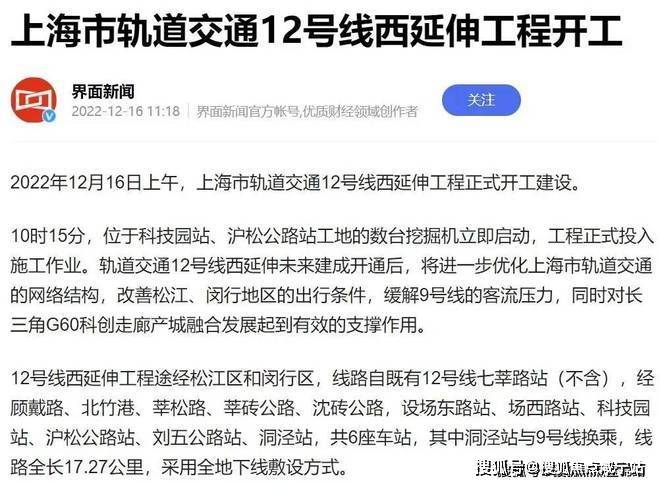 松江保利西郊和煦售楼处电话:400-8800-703【预约】目前12号线西延伸正在加速推进,预计2027年底开通试运营。12号线西延伸在松江境内从G60云廊沿沈砖公路,东西向穿过洞泾,设沪松公路和刘五公路设站,在洞泾站与9号线交汇。