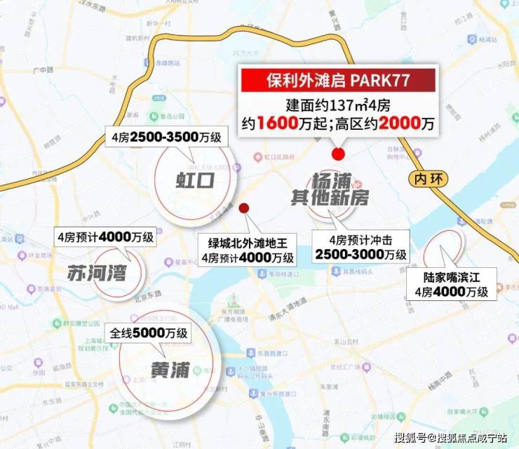 北外滩地王4房预计售价4000万级;虹口其他新房4房价格普遍在2500-3500万;静安苏河湾4房预计4000万级;陆家嘴滨江4房同样4000万级。如此对比之下,保利外滩启PARK77高区2000万级4房的价值,可谓市中心“独一份”。