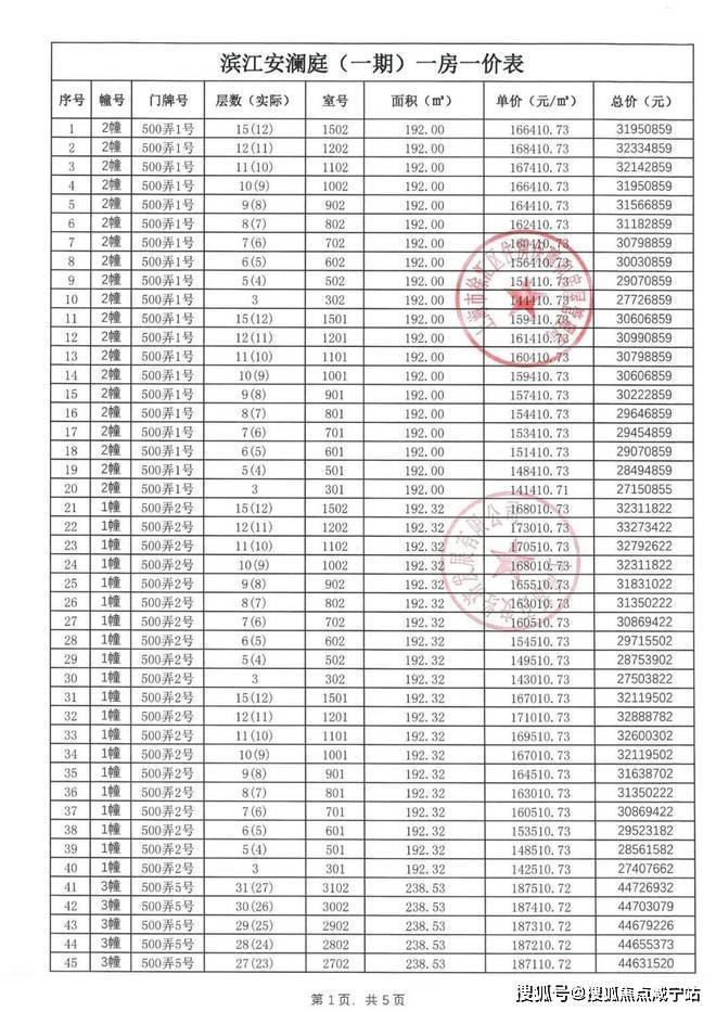 【安澜上海】一房一价表: