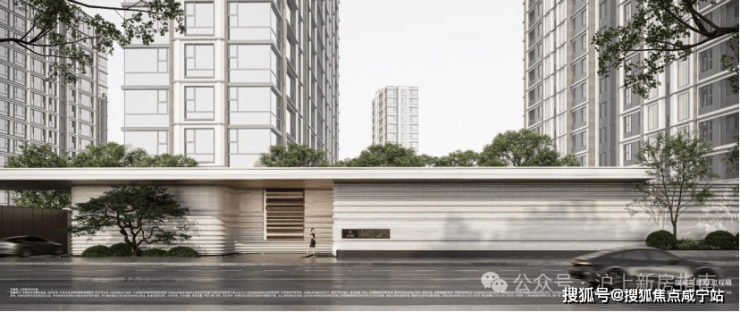 弧形仿石铝板勾勒立面层次,门厅、柱体、台面皆以柔弧过渡,不同材质成多倍投入以达最佳效果,打造温润高贵、典雅内敛的独有气质