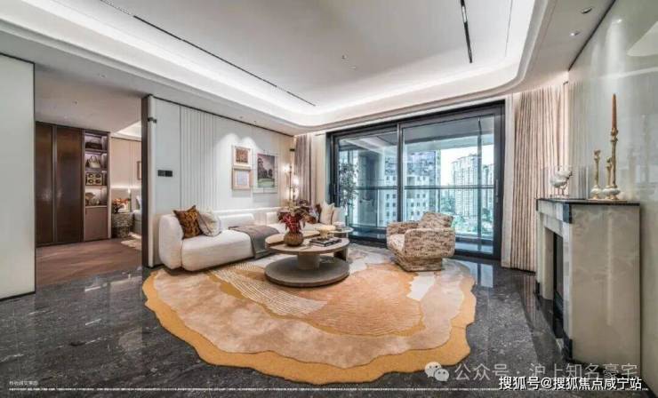 卧室则铺设海派鱼骨拼花地板,借木质肌理的温润与细腻,营造出私密领域的宁静氛围!这种“公区显质感、私域藏温度”的材质分区逻辑,恰是高端住宅设计中至关重要的一笔!