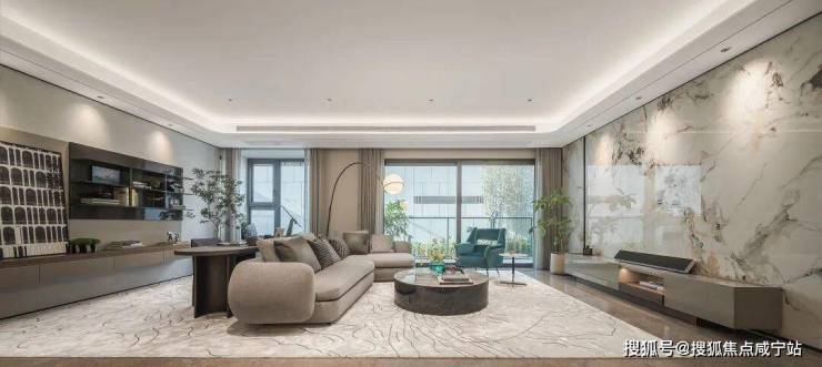 比起中规中矩的直线,弧形施工工艺更复杂、造价更高,却多了几分灵动轻盈!这种弧形的元素不只是在样板间里,在售楼处也能经常看到,比如电梯厅。