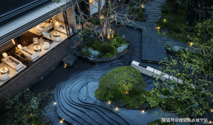 围绕约300㎡的镜面水展开,利用高差,呈现一处藏于下沉花园的东方隐奢秘境