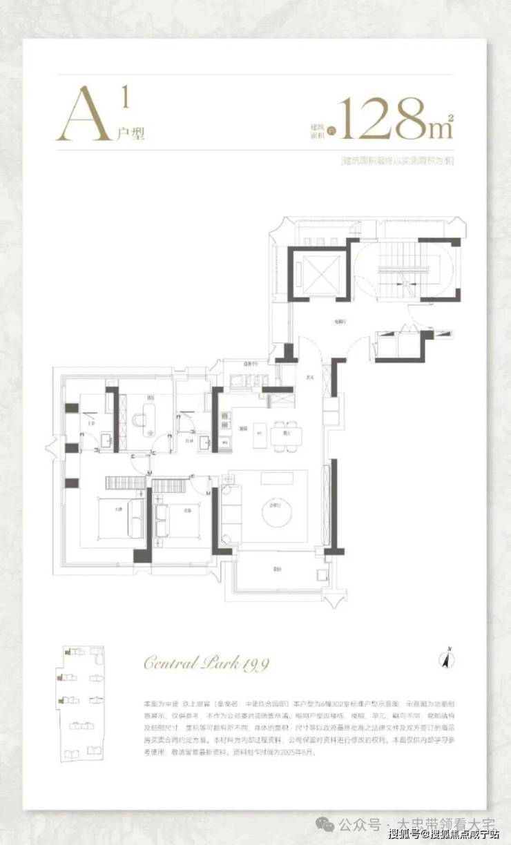 128㎡三房:约270°采光,主卧无柱转角飘窗