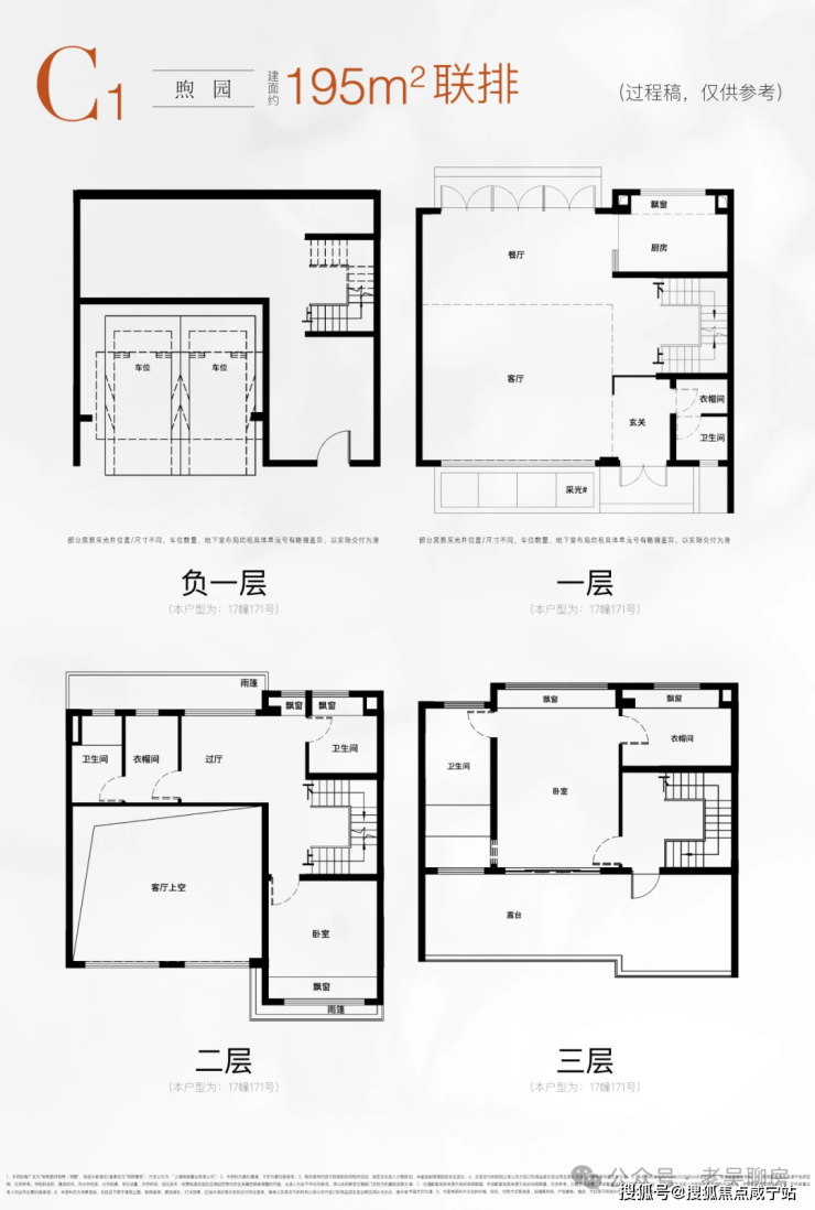 建面约195㎡的C1户型,尺度更加惊人,墅居体验堪称“庄园式”!
