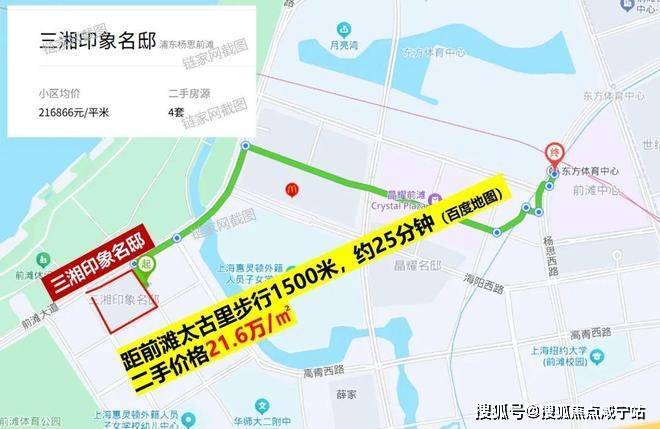 从前滩九宫格走到前滩太古里需要足足25分钟。而前滩九宫格的二手豪宅价格高达21万+(今年2月链家成交的一套三湘印象名邸低区单价17万+)。