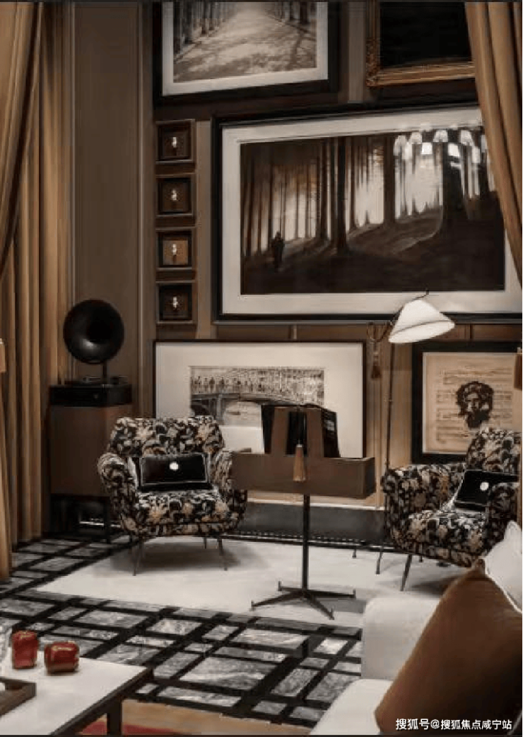 经典黑金系:由丹健国际操刀,以深邃色调为基底,搭配奢石的天然肌理与甄选的百年品牌与品味,将海派摩登与当代奢华藏于细节。