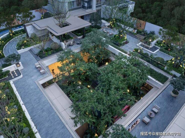 整个会所巧妙利用建筑高差,营造立体多维的景观层次,打破沉闷压抑感,使下沉式会所与庭院景观自然衔接,实现社交空间与生态场景的无界融合。
