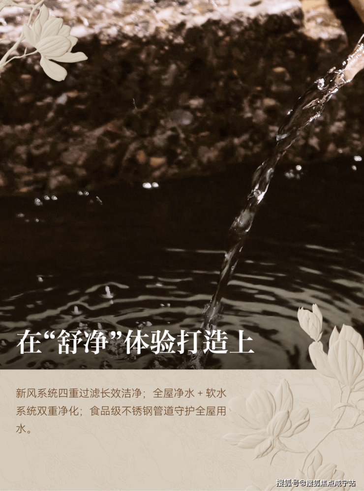 在“舒净”体验打造上,新风系统四重过滤长效洁净;全屋净水+ 软水系统双重净化;食品级不锈钢管道守护全屋用水。