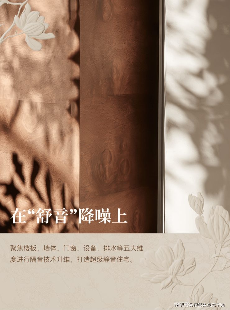 在“舒音”降噪上,聚焦楼板、墙体、门窗、设备、排水等五大维度进行隔音技术升维,打造超级静音住宅。