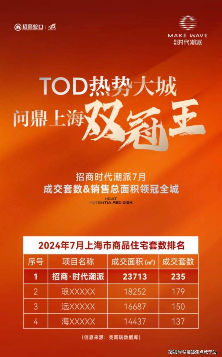 据克尔瑞统计,招商时代潮派荣登上海7月销售面积、套数“双冠王”!