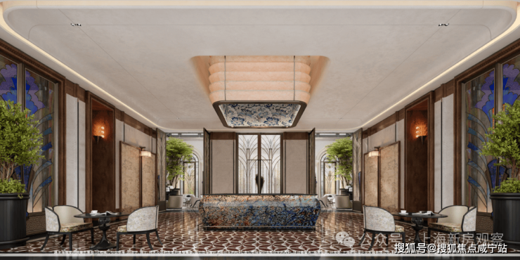 示范区以“玉兰门庭—迎归大堂—莳花荟”为核心轴线,运用非遗技艺与奢贵石材打造。约65米长玉兰门庭融合海派元素,9米挑高迎归大堂,汇集多位艺术家跨界作品,莳花荟中央会客厅再现海派社交场景。