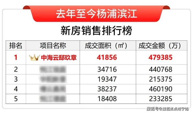 据网上房地产数据统计,去年至今各个维度中海云邸玖章都占据杨浦滨江的销冠宝座!