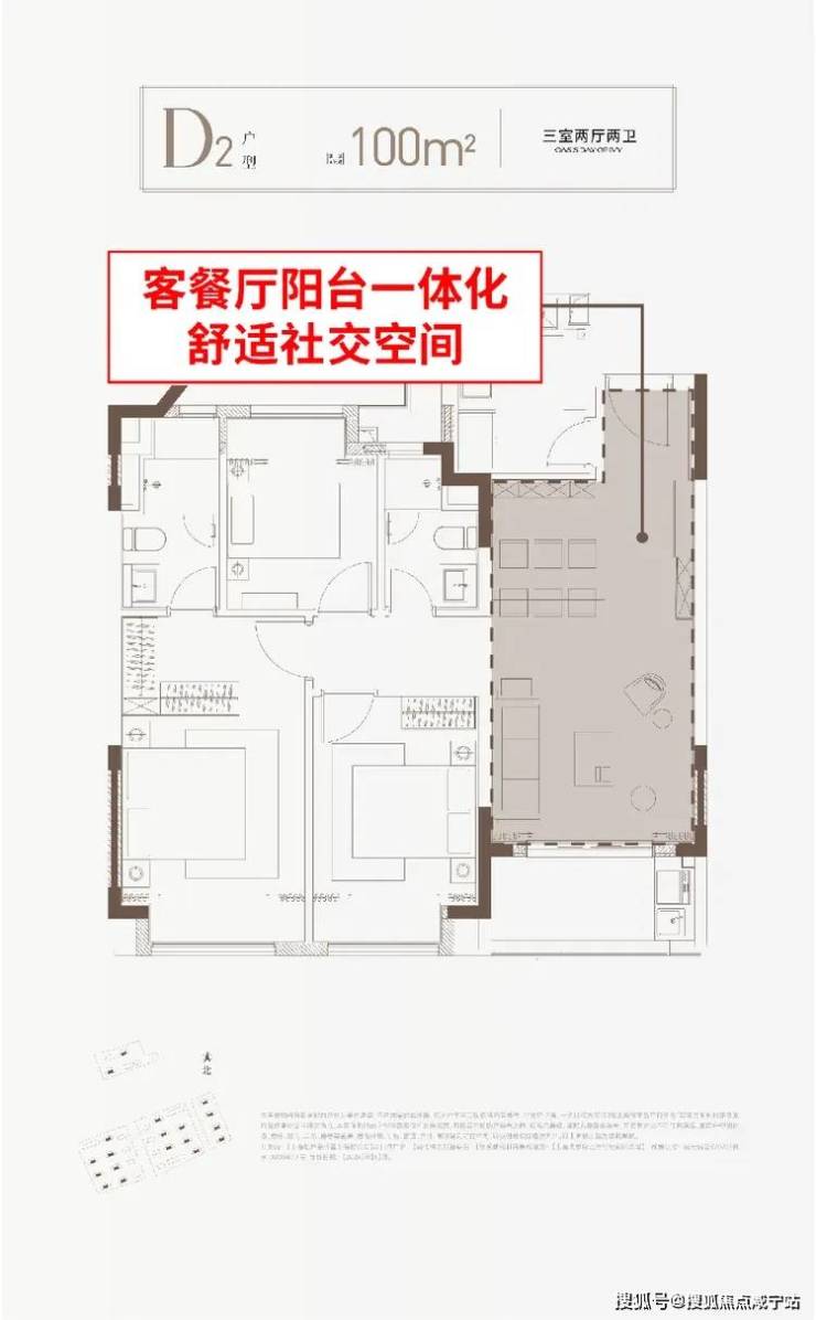 ②、约80-83㎡超高得房率,百平米从紧凑三房进阶为改善三房