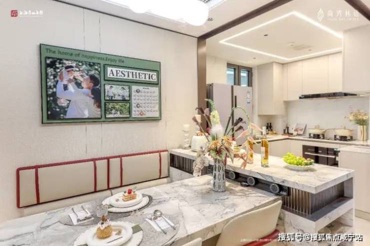 尤其户型餐厅位置,可以放下六人桌,而一般户型只能贴墙放四人桌。尚湾林语百平米户型大家庭其乐融融。