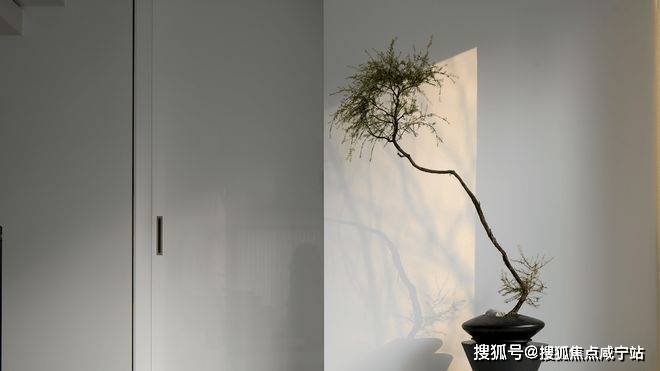 器物、枝叶缔造了虚实相生的意境,在墙面上留下了唯美的“倩影”,进而丰富了空间内在。