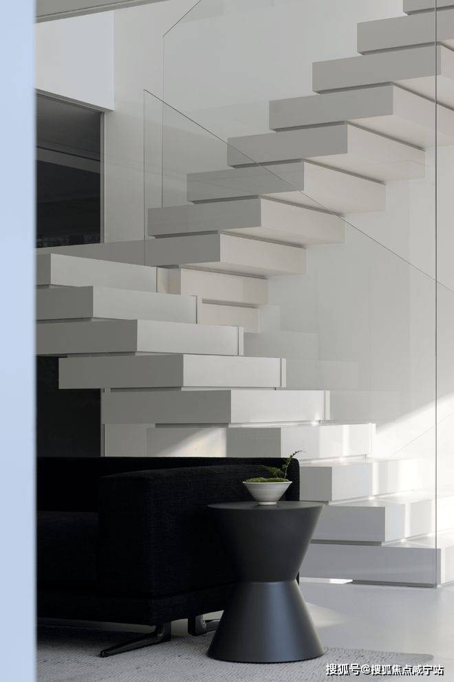 楼梯选用了纯白色,光是唯一的装饰品,在寻常中展现着空间最为纯粹的美。
