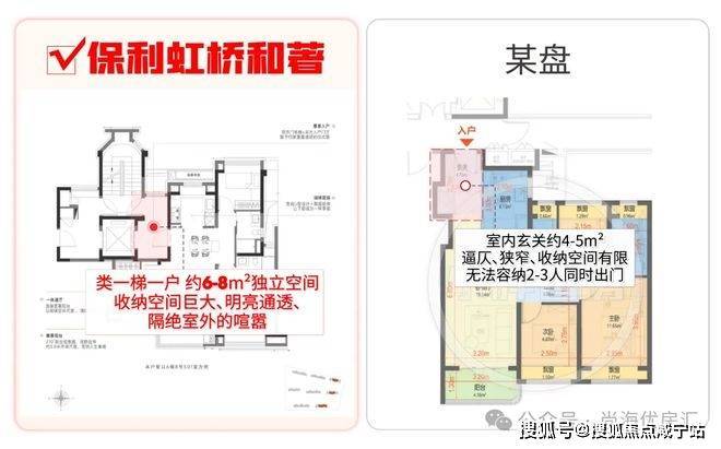 相比其他百平米3房玄关的逼仄、收纳空间少的问题,保利虹桥和著本次所有户型都做到了类一梯一户,享全明独立电梯厅: