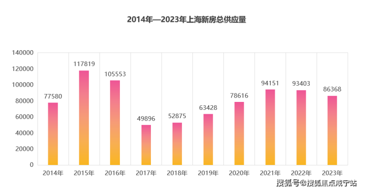 2014年-2023年十年间,上海新房总供应量仅为819689套。