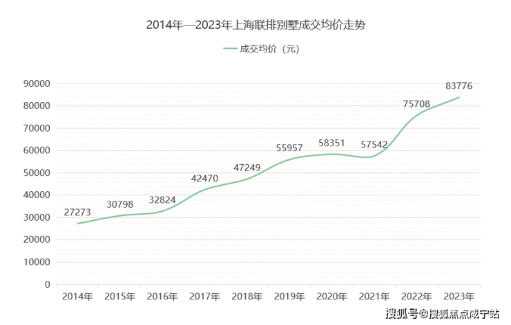 2014年-2023年十年间,上海联排别墅总供应量仅为32236套。