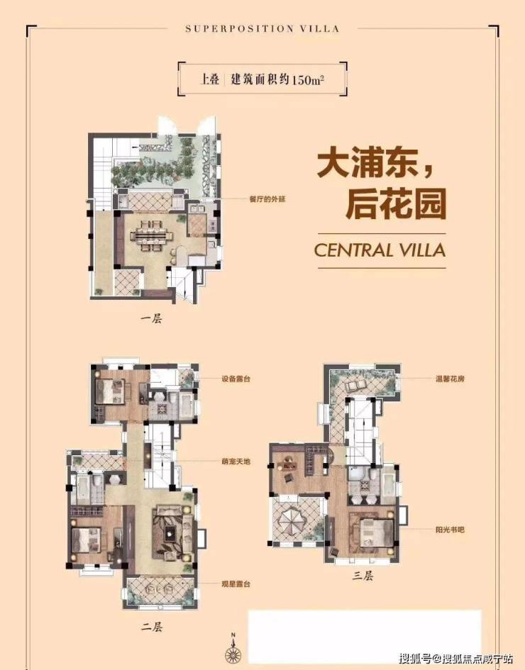 上叠户型是建筑面积150平米的三层,4房2厅中西双厨的全套房设计,特设独立花园入户通道,保障业主私密性。