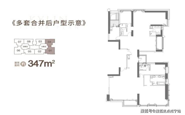 •该栋分为A/B单元,每个单元有四个单位:包含3套150㎡及1套180㎡,平面布局与住宅相似;