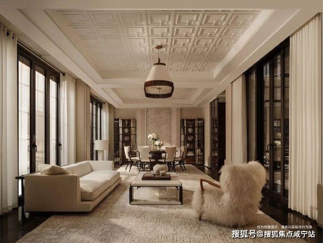 契合中国传统院落居住哲学理念,以“外紧内松”空间设计手法,对风貌别墅空间尺度进行当代拓新,让空间服务于生活。外紧-通过外部百年巷道肌理活化、建筑错落排布景筑交融,打造美而精的体验;内松-宅院内以多重庭院、立体花园、大落地窗等实现室内尺度拓新,给家人更多停留空间、打造建筑会呼吸的松弛感。