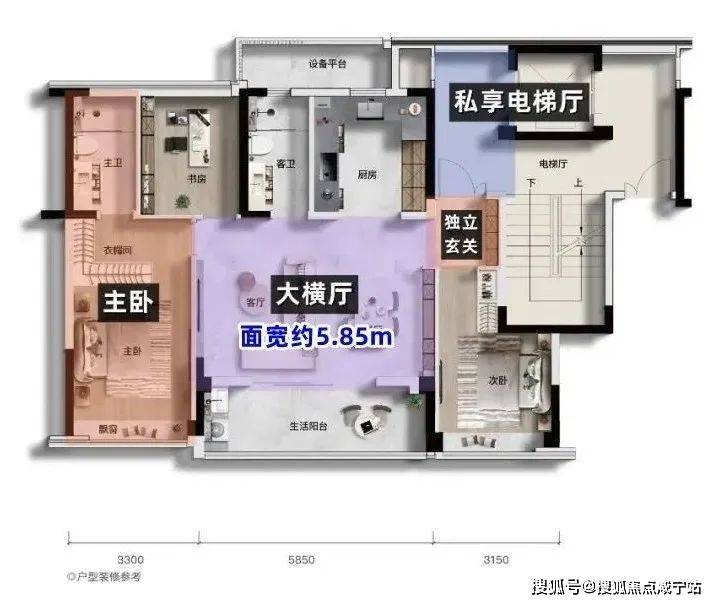 此外,三房两厅两卫,一梯两户,电梯双开门,自带私享电梯厅……都是这个户型的鲜明特色!