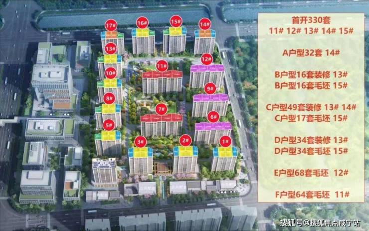 项目总占地面积约6.36万㎡,建筑面积19.5万㎡,容积率2.0,由16栋16-17F住宅、1栋18F保障房及若干配套用房组成。