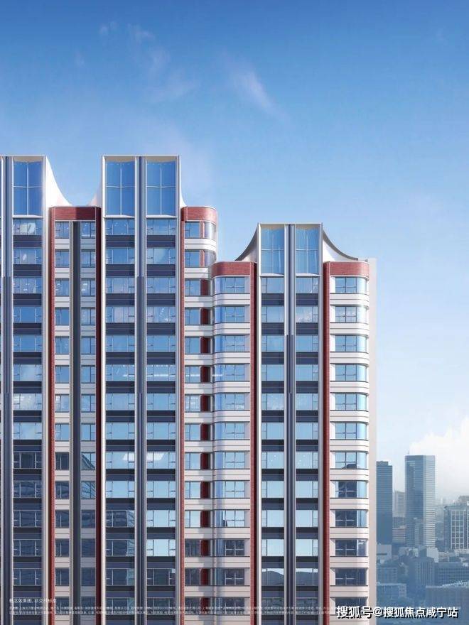 不管住宅还是会所,都堪称美学地标,其中住宅立面选用珍珠蓝、香槟金、海派砖红等鲜明色彩,搭配约270°圆弧造型,昭示性特强。