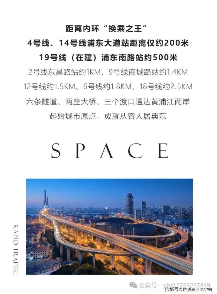 交通:距离4/14号线浦东大道站仅200米,可贯通浦东浦西各核心商圈。距离在建19号线浦东南路站约500米。自驾:距离大连路隧道、人民路隧道、新建路隧道1公里左右,三条过江隧道可快速到达城市各处。
