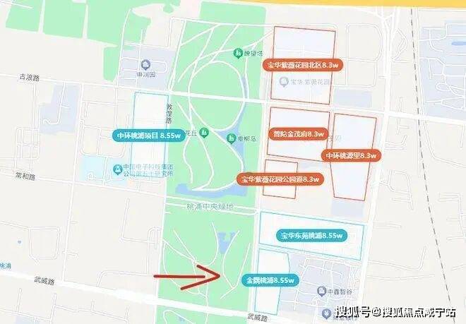 整个项目包含两个地块,地理位置就在宝华紫薇之星南侧,联动价8.55万元/㎡。这块地是2023年四批次土拍时由金隅地产拿下,也是紧挨桃浦绿地的景观房。