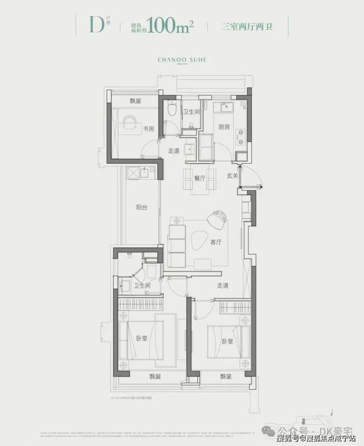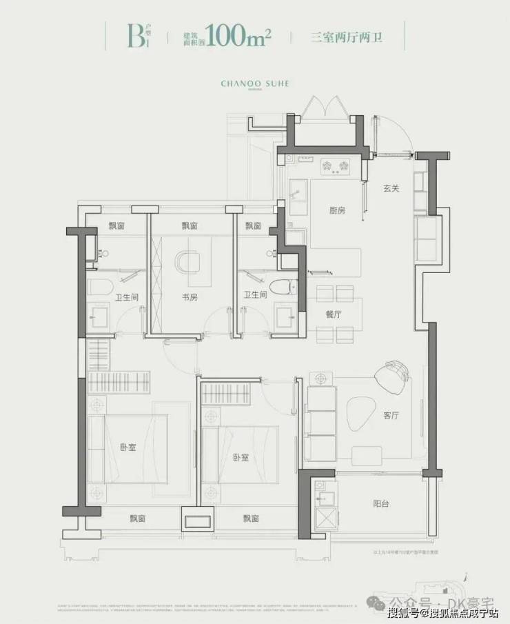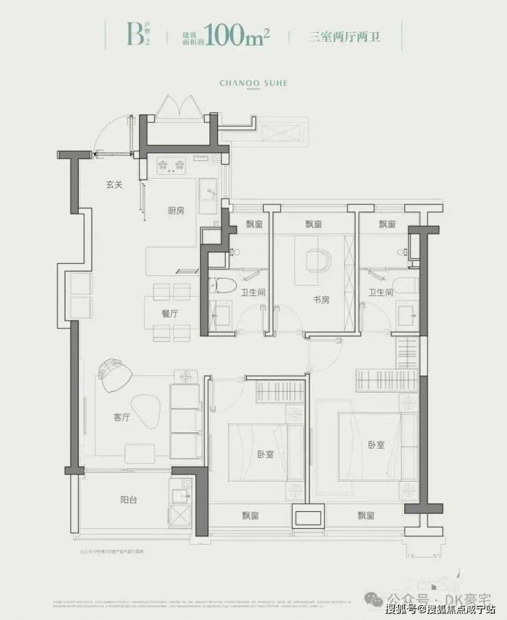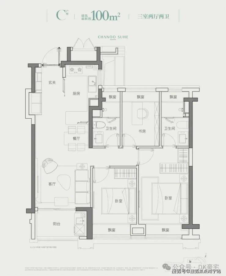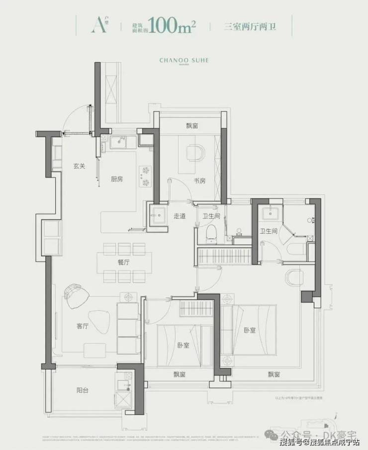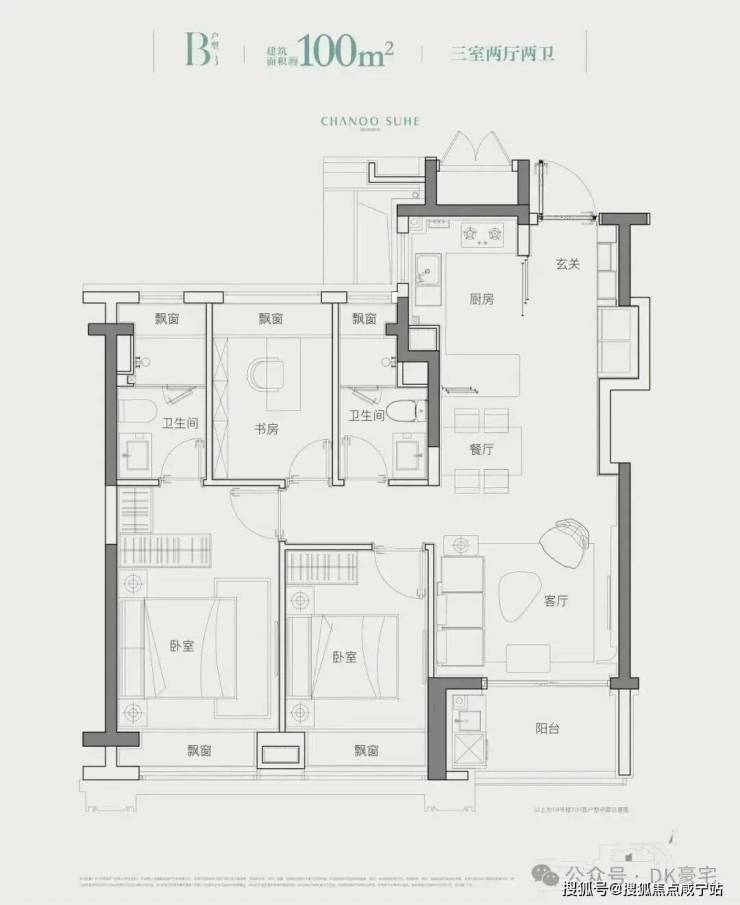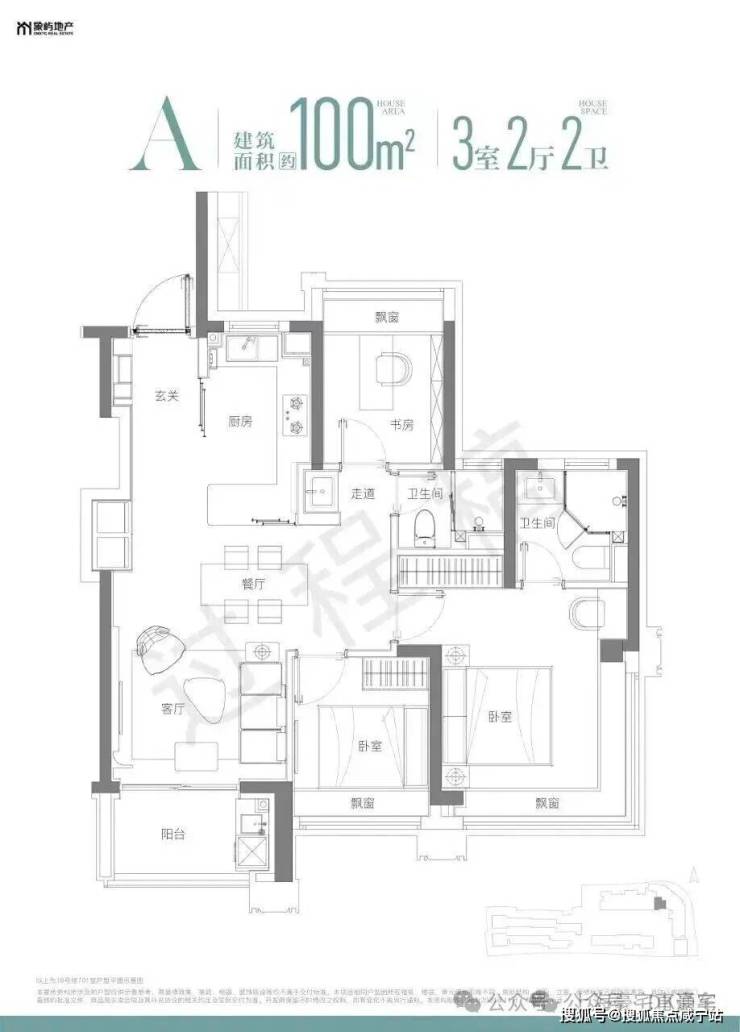 项目高层产品均为100㎡左右3房户型,一梯6户: