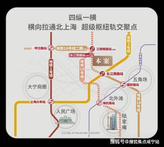 中环之上奢居新地标:招商序择址上海源点吴淞。近代中国“四个百年”之处,拥有悠久的历史,更是北上海轨交聚点,地铁18号线横向拉通了原本纵向不相连的四线地铁:1/3/18/19,将北上海横向联通,成为区域轨交的交汇聚点;项目紧邻长江西路地铁站(直线距离约150米),1站江杨南路,5站复旦,7站五角场。