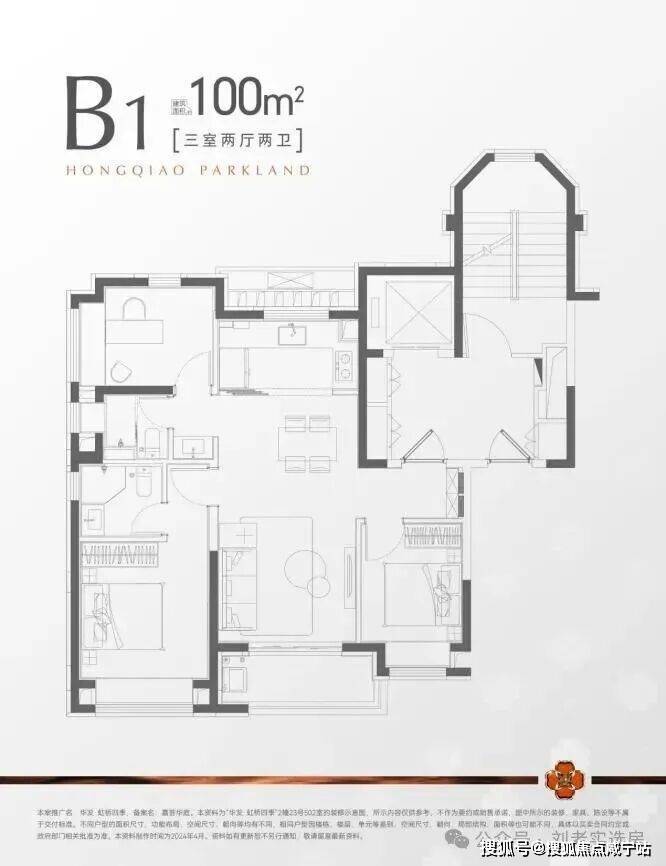 三房两厅两卫的100㎡户型,飞机户型,空间布局细节拉满,为业主带来越级的宜居体验,无论是三口之家还是三代同堂,都可以在这里找到属于自己的幸福空间!
