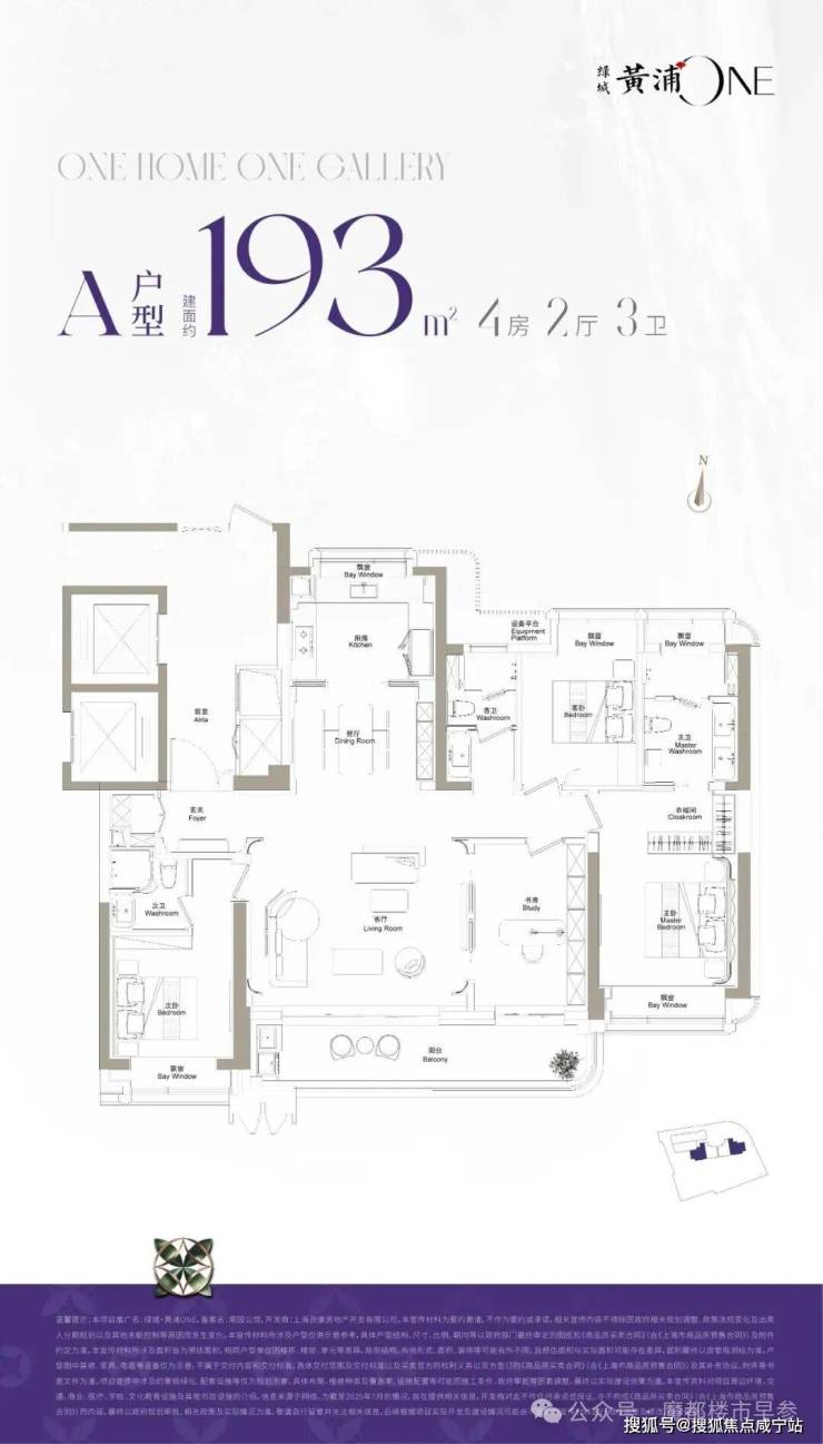 绿城·黄浦ONE售楼处电话:400-8800-703规划了一幢住宅,两个户型依次排开,规整有序,边套是约193㎡4房2厅3卫,中间套是约155㎡3房2厅2卫户型,是纯粹改善大户型社区。