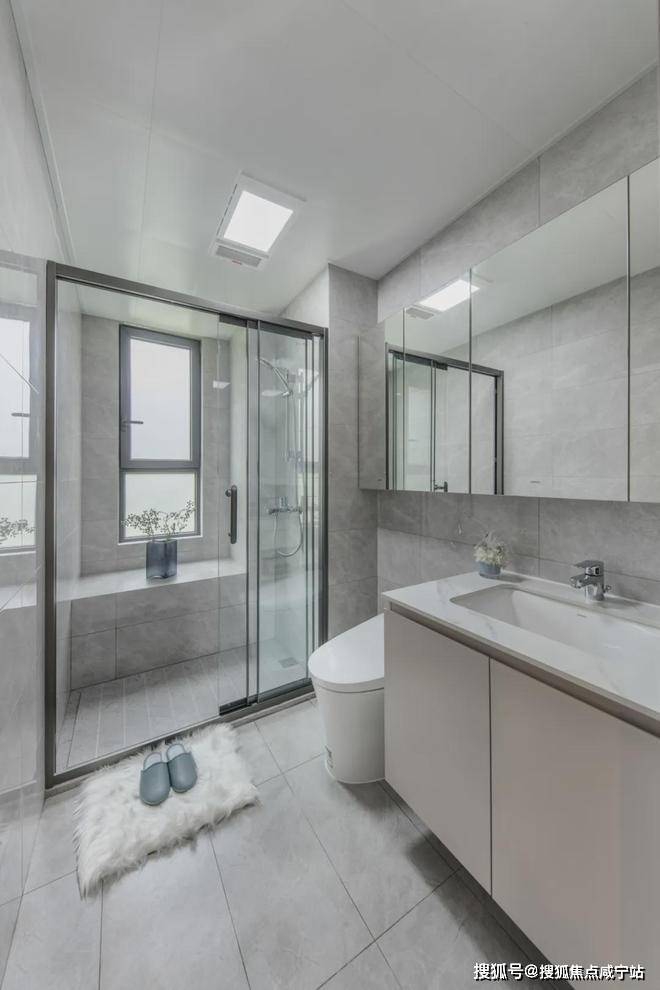通常,主卫和次卫能拥有窗户达到全明采光已经称得上优秀了,而这套户型的两个卫生间均都有飘窗,丰富收纳可能性。