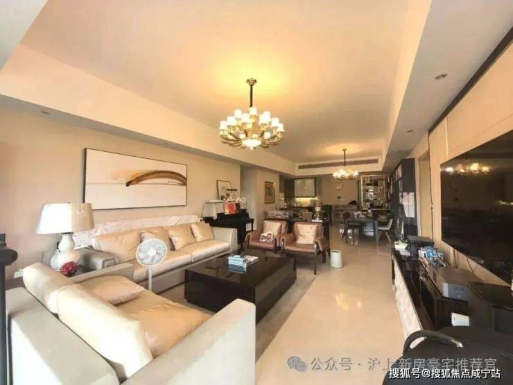客厅超大,带景观阳台,贯通餐厅与厨房,中西双厨设置,隔绝油烟同时联动保姆套间,动线规划合理;
