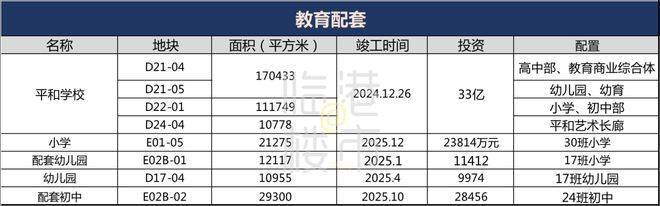 教育兑现力:平和双语学校结构封顶,其他4所公办学校预计2025年建设完成