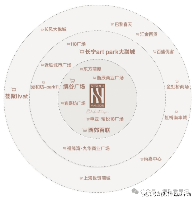 顶奢配套全新长宁国际生活圈:临近缤谷广场、百联西郊购物中心,东方商厦等老牌商业,3KM范围内涵盖金虹桥商场、上海荟聚、虹桥南丰城、尚嘉中心(LVMH集团投资)等超106万方商业综合体(*数据来源于百度地图测量及百度统计)